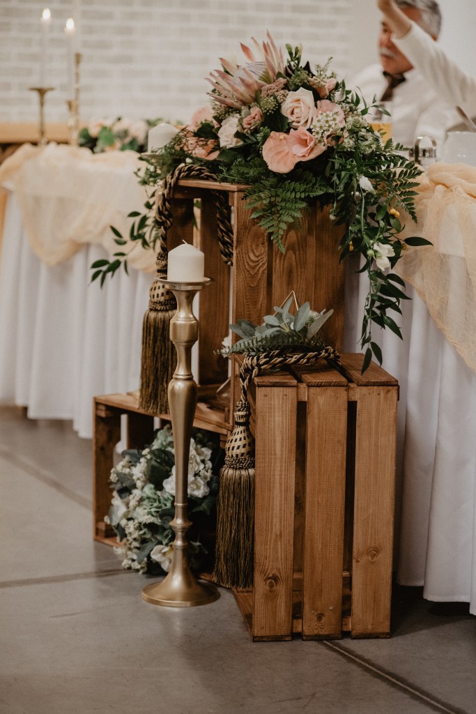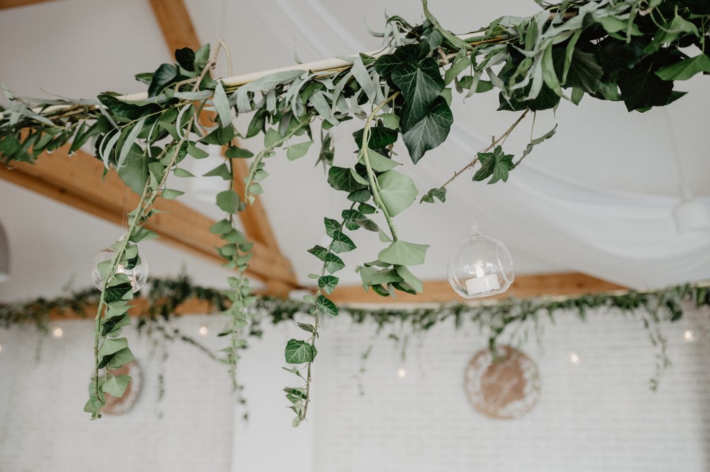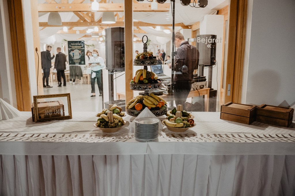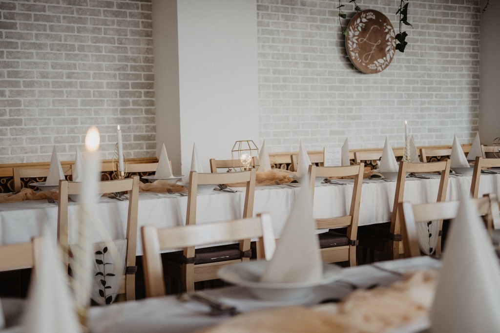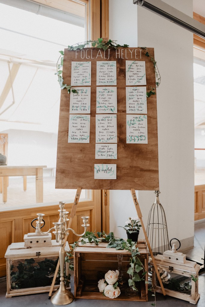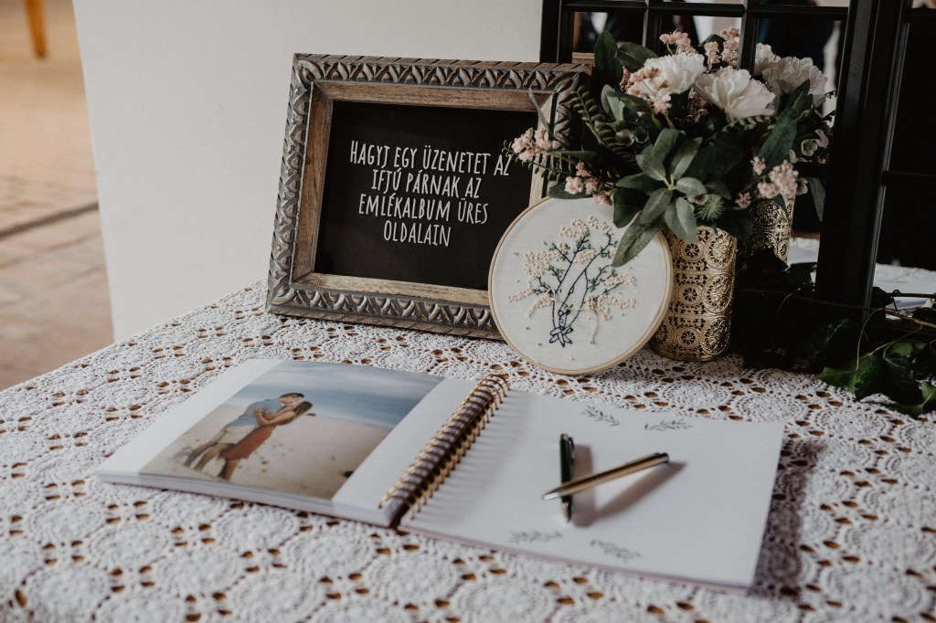 Sokak által ismert és kedvelt helyszínen jártunk, ahol Lilláék ünnepelték meg egybekelésük napját. Különlegesen légies hangulatát az asztalok fölött végigfutó zöldek és lelógó mécsesek, valamint púderes színpalettája adja. A helyszín sajátos világos tónusú fa gerendái és székei is könnyeddé varázsolja a teret. Hogy maximálisan személyes élményt nyújtsunk az étterem plakátjaira tábláira és még fali lámpáira is egyedileg méretre készített táblákat készítettünk.